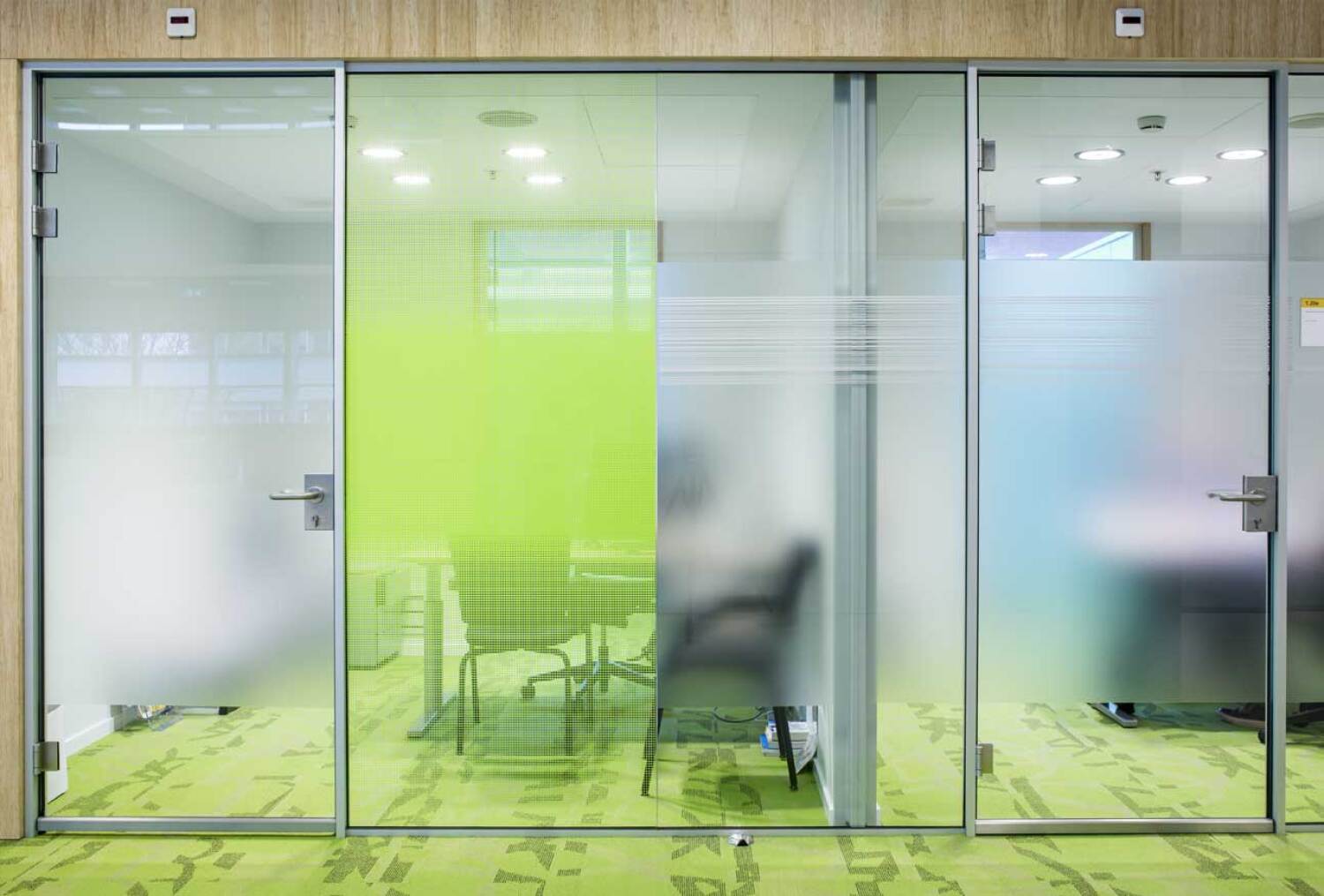 Producten: Volglazen binnenwanden en geluidswerende volglazen schuifdeuren.