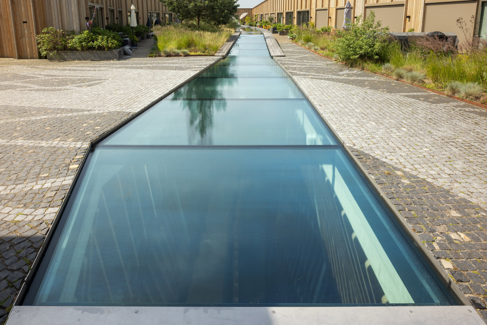 Voor het innovatieve woonproject Jonas in Amsterdam ontwikkelde en leverde Glasdesign speciale beloopbare dakbeglazing. Deze bestaat uit gehard, gelaagd en HR++ geïsoleerd glas met indrukwekkende afmetingen tot wel 2,7 bij 2,5 meter per stuk. De beglazing is ontworpen om de constante waterdruk van een waterval te weerstaan – een krachttoer in glas en techniek.